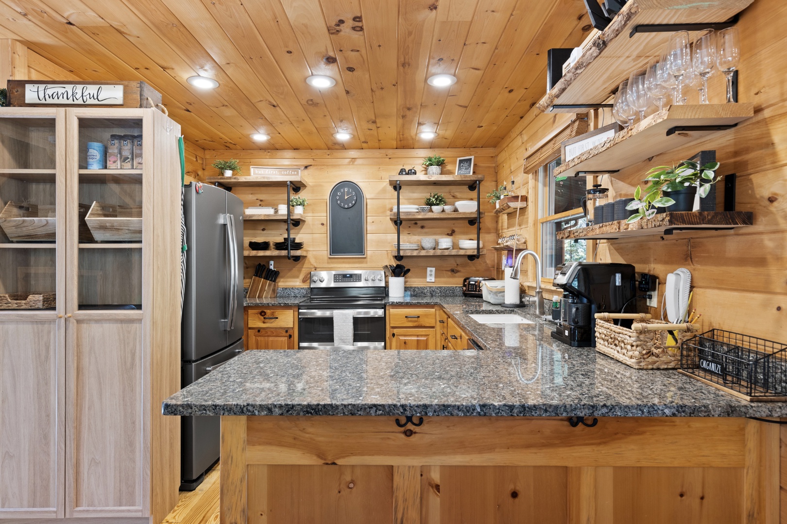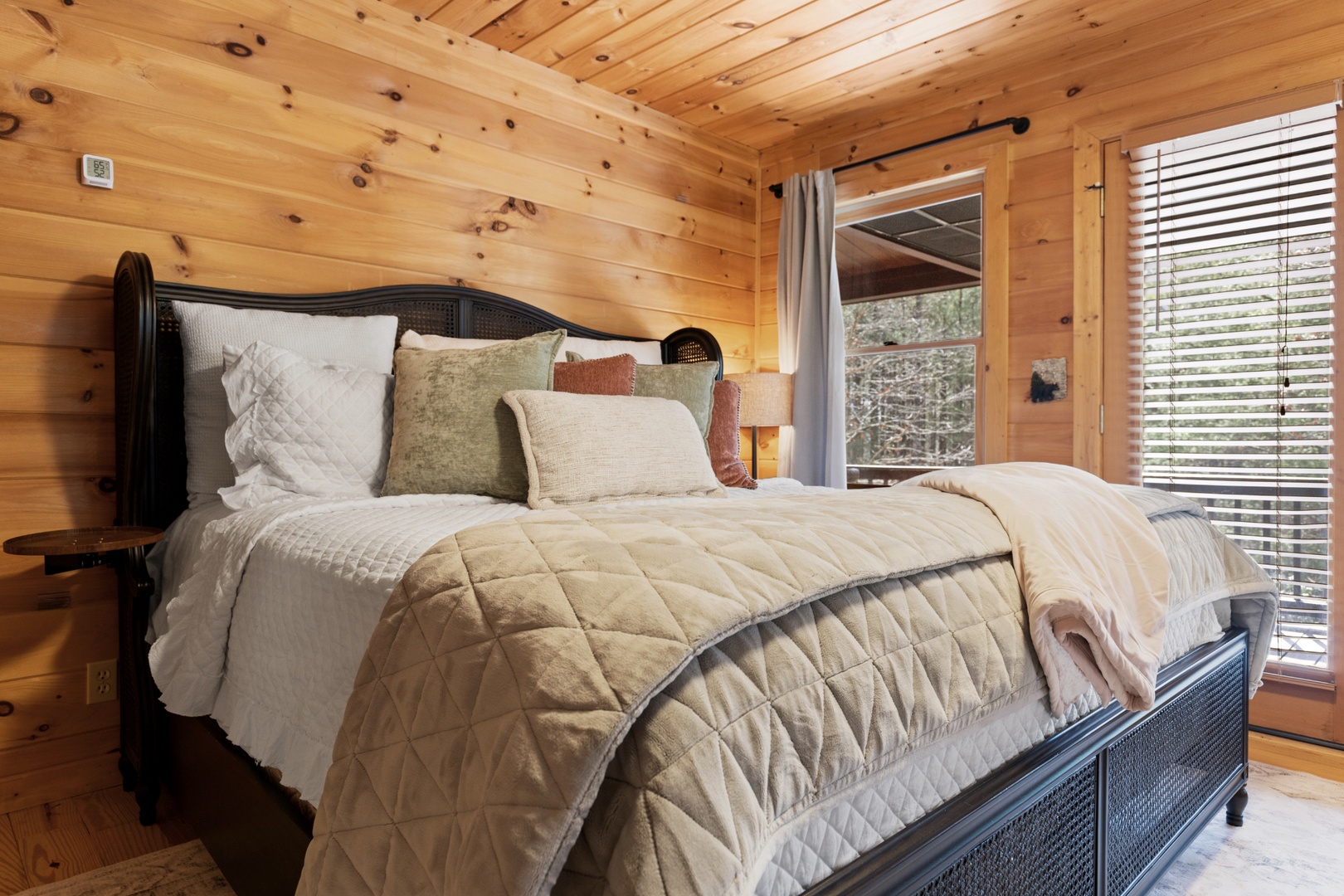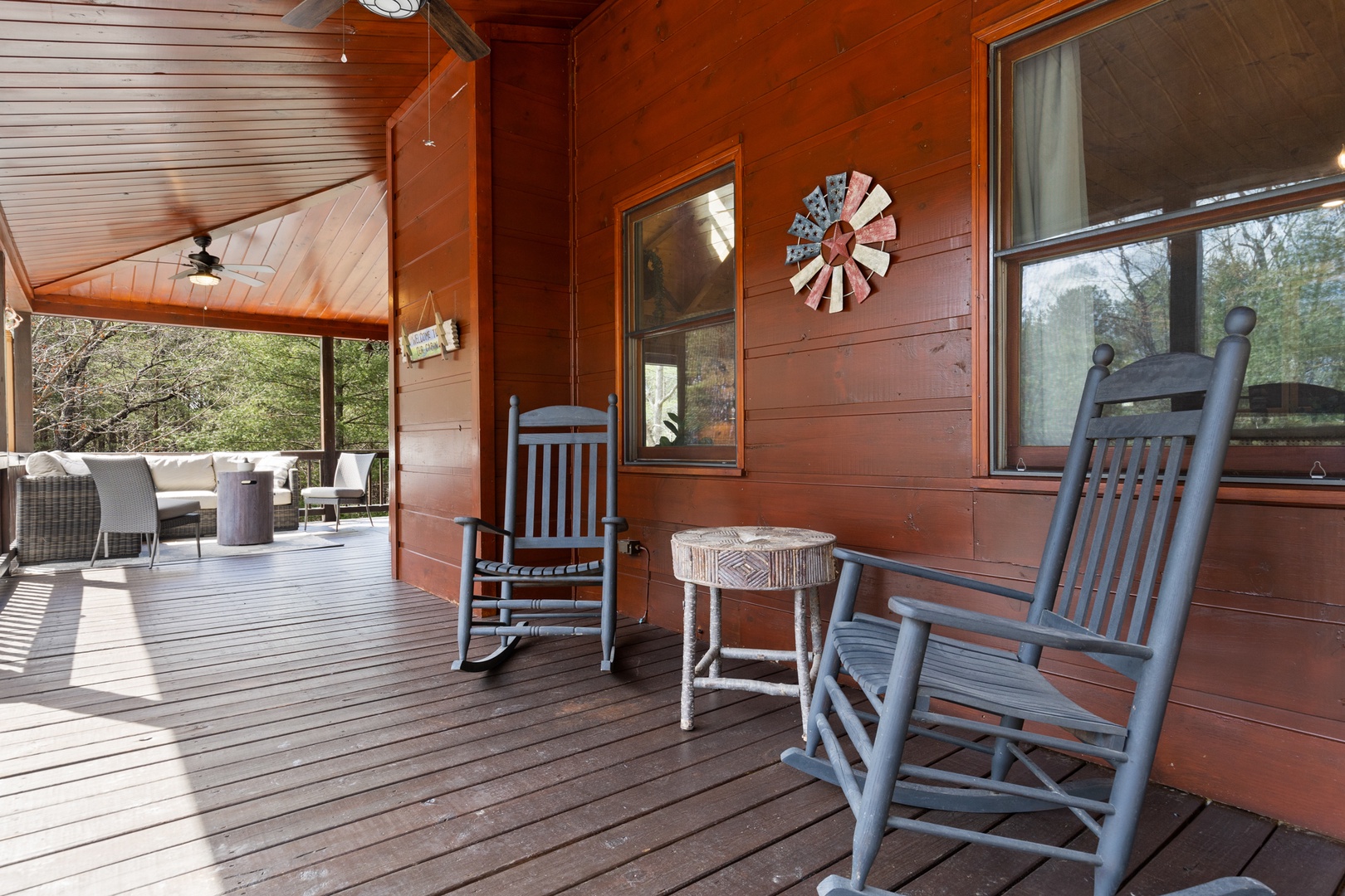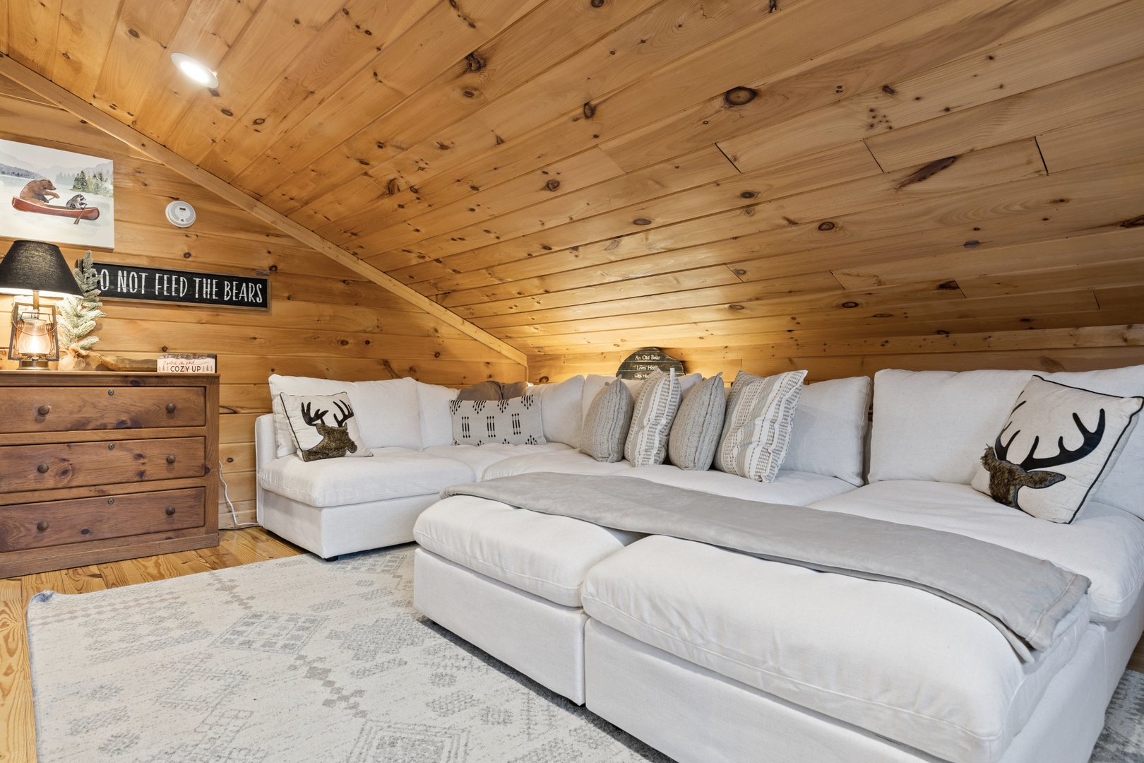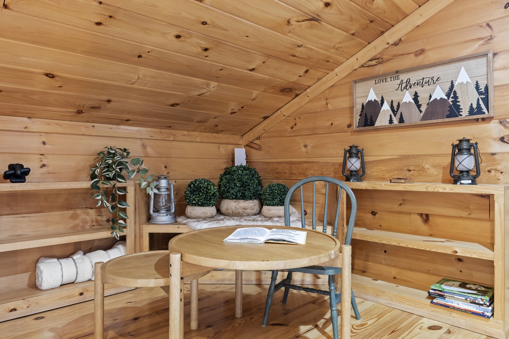 Inside, upscale furnishings and thoughtfully curated spaces create an elevated yet inviting atmosphere. Whether you’re planning a working retreat or simply want room to spread out, this cabin features FOUR dedicated workstations and dual high-speed internet — Starlink plus local service — ensuring a remarkably reliable connection for remote work, streaming, and video calls.