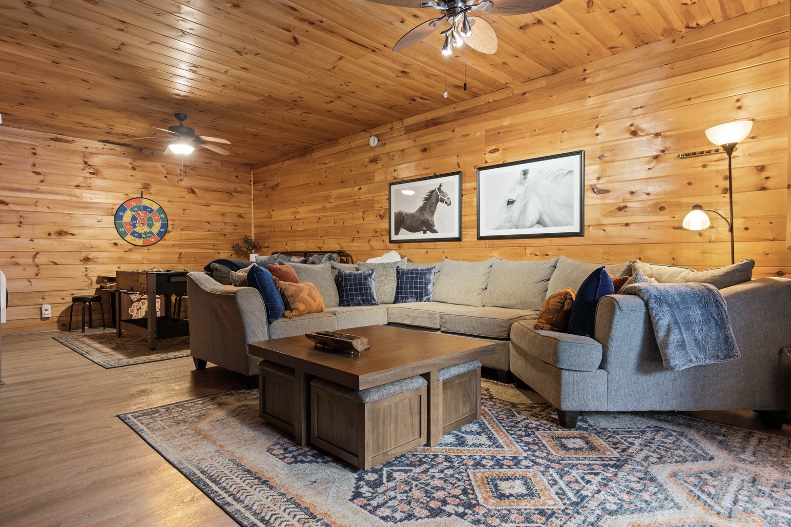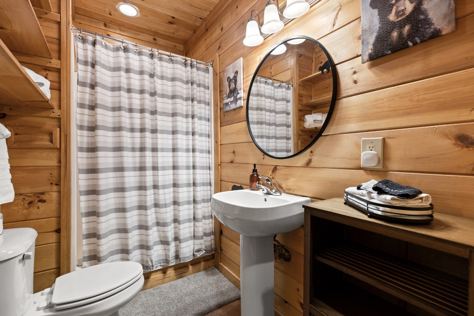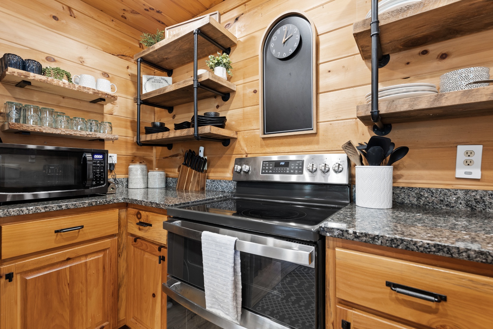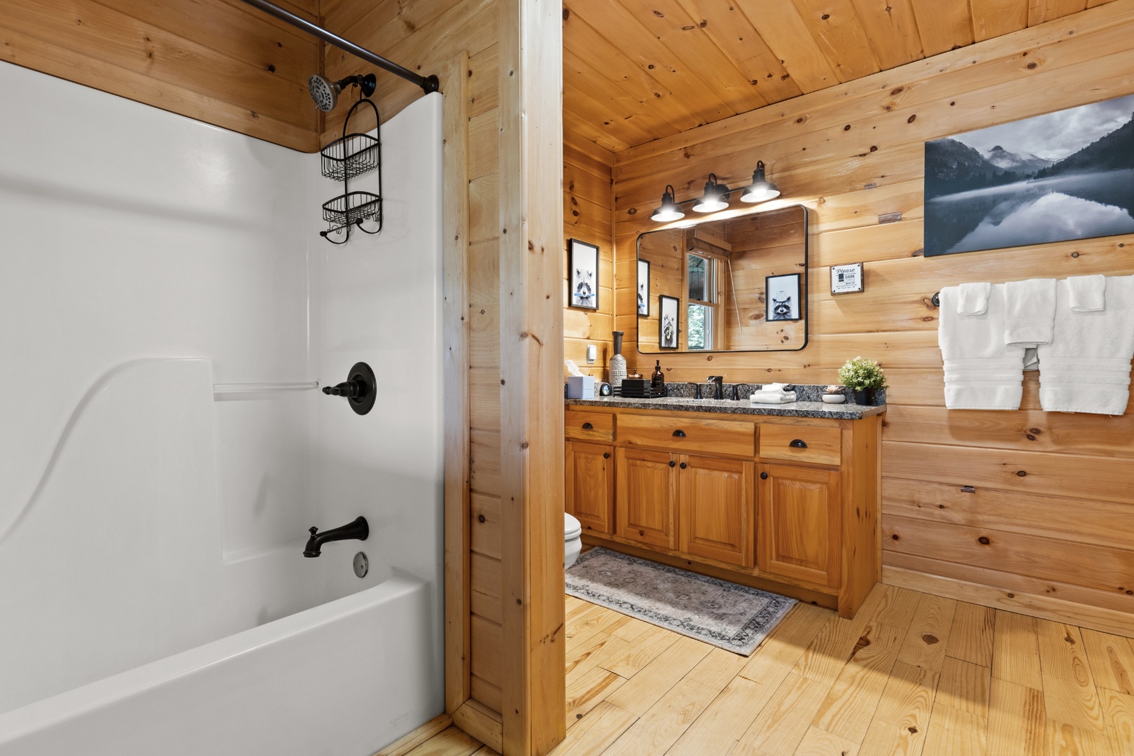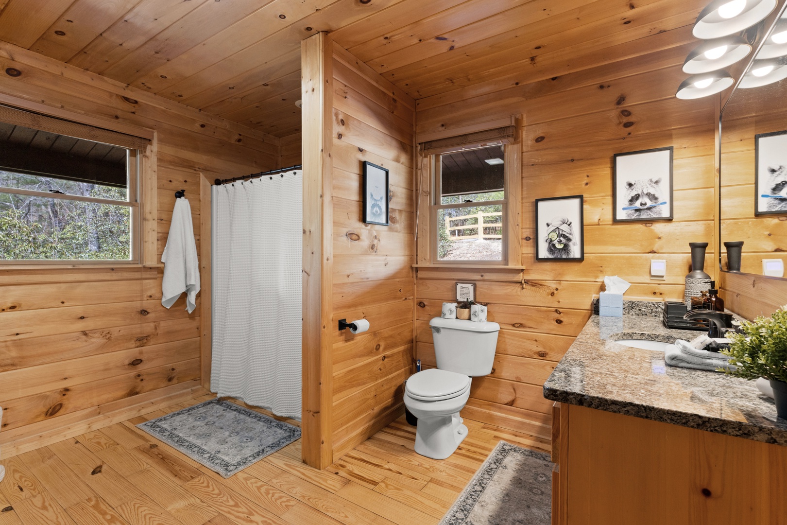 Inside, upscale furnishings and thoughtfully curated spaces create an elevated yet inviting atmosphere. Whether you’re planning a working retreat or simply want room to spread out, this cabin features FOUR dedicated workstations and dual high-speed internet — Starlink plus local service — ensuring a remarkably reliable connection for remote work, streaming, and video calls.