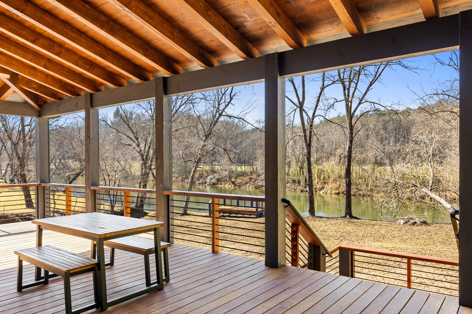 Be among the first to stay in this stunning new build on the Toccoa River. Relax like never before while fishing from the private deck or tubing the river just steps away. Enjoy a beautifully appointed kitchen and a spacious outdoor living area perfect for taking in the peaceful setting. Whispering River Retreat has everything you need for the perfect mountain escape.